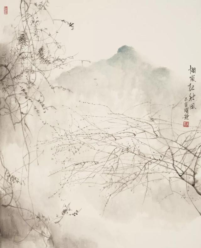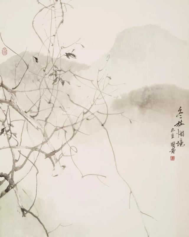 荒寒与空灵是陈国欢老师的审美追求。他认为绘画是“心象”,而不是简单的再现自然。同样的山水,身处不同时空中的人,体验也不同。为了超脱限制,陈国欢老师隐去了飞鸟、船舟、人物,把山水固化在没有时间概念的境界中。这次展览的作品,可以清晰的看到寒枝是陈国欢老师绘画中重要的母题,自然界生长的树枝像极了中国画的线条,诠释了笔墨的精妙。从春天的嫩藤生发,冬天的枯瘦,枝与藤也有生命、有情感、有节奏、有韵律,像极了音乐与诗歌。陈国欢老师用不同的笔锋、节奏,去表达不同的枝干,他画树,多枝而少叶,可以满足对线条的自由表达,以及对空灵与留白的追求。